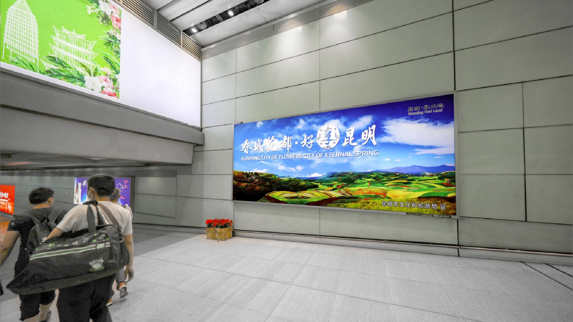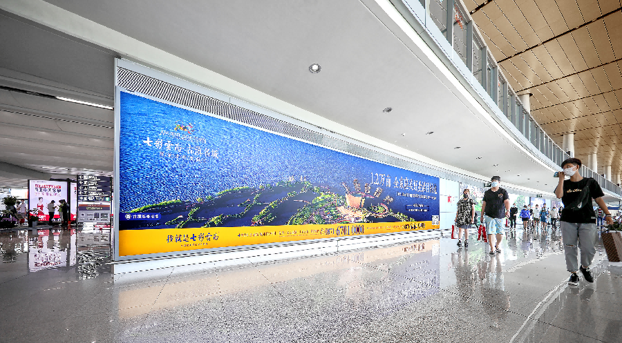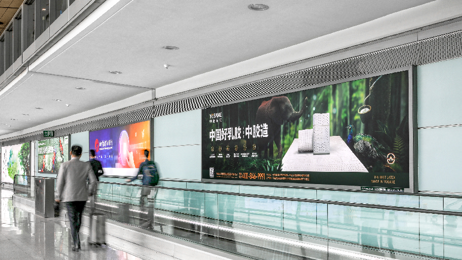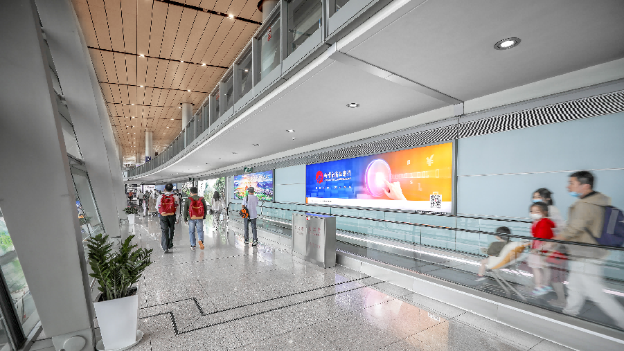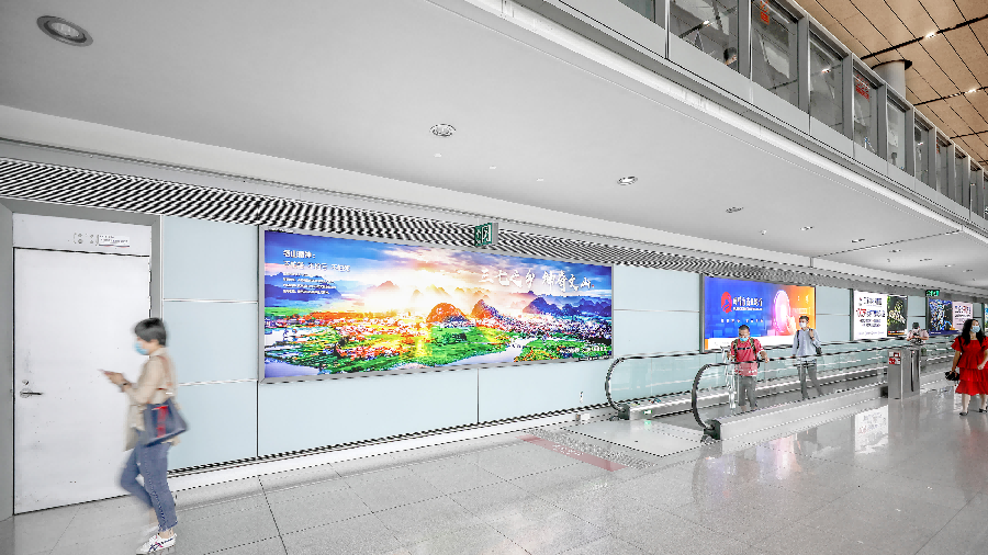 主页 F2层到达 国内到达中央指廊墙面灯箱+贴纸